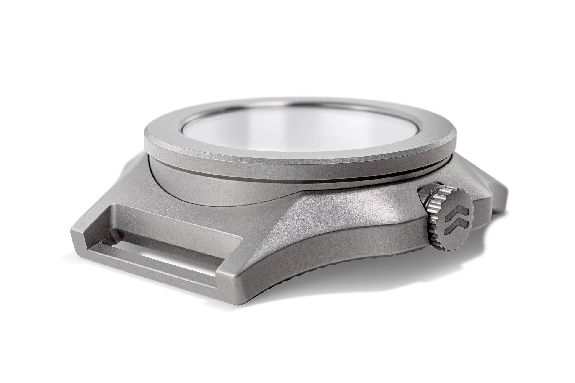 Gehäusekonstruktion: Edelstahl, feste Lünette und Ösen, verschraubte Krone
